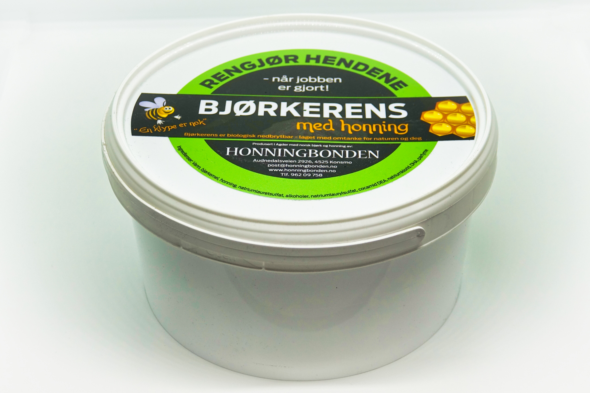Bjørkerens er utviklet av Honningbonden, og er en miljøvennlig og biologisk nedbrytbar håndrens, laget på en egenutviklet oppskrift med omtanke for naturen og deg.